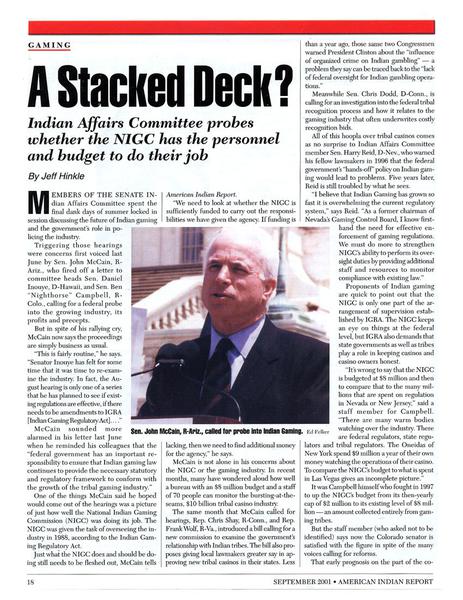 American Indian Report • 09/01/2001 A Stacked Deck Piece recounting Sen. John McCain's demand for a probe into NGIC budget and staffing.