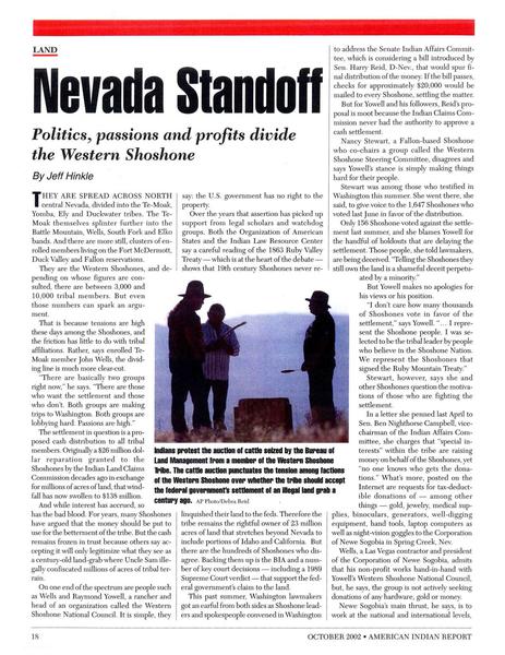 American Indian Report • 10/22/2002 Nevada Standoff Tribal politics and passions drive a wedge between factions of the Western Shoshones.