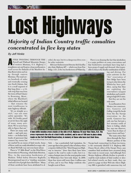 American Indian Report • 05/01/2002 Lost Highways An examination of the many potentially-lethal roads that crisscross Indian Country.