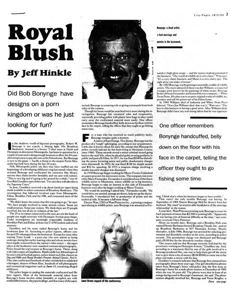 Minneapolis City Pages • 10/01/1988 Royal Blush Cover story looking at the controversial efforts of Minneapolis cops to bring down would-be pornographer.