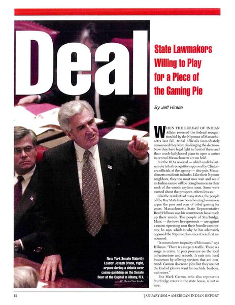 American Indian Report • 01/20/2002 Deal Why do states that once opposed Indian gaming suddenly embrace it? Money.