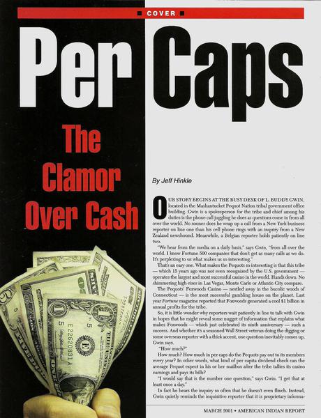 American Indian Report • 03/01/2001 Per Caps The myths and realities surrounding gaming "per cap" payments to tribal members.