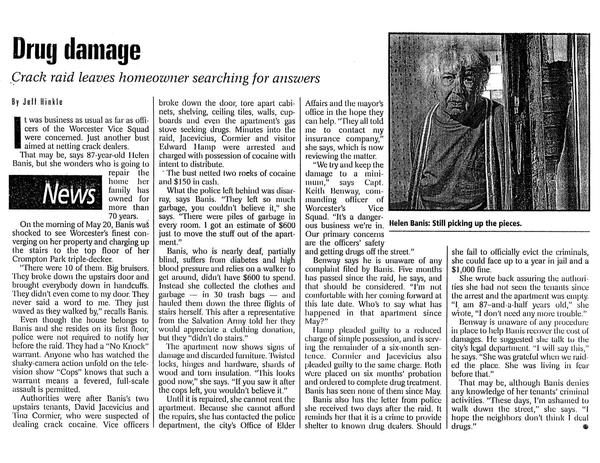 Worcester Magazine • 01/20/1999 Drug Damage A misguided drug raid and the damage and finger-pointing that followed.