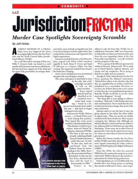 American Indian Report • 11/01/1998 Jurisdiction Friction A grisly Idaho murder case and the repercussions it triggered across Indian Country.