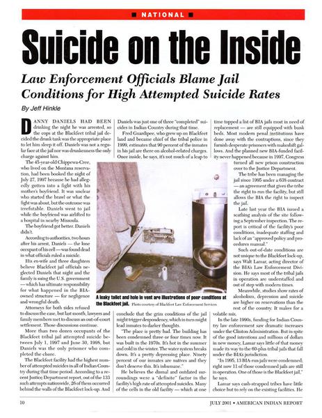 American Indian Report • 07/01/2001 Suicide on the Inside Grim conditions in tribal jails are blamed for high suicide rates on reservations.