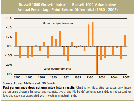 B2C Marketing • 01/22/2008 Product Sheet: ING Funds B2C Sell Sheet touting ING (now Voya) Large Cap Growth Fund.